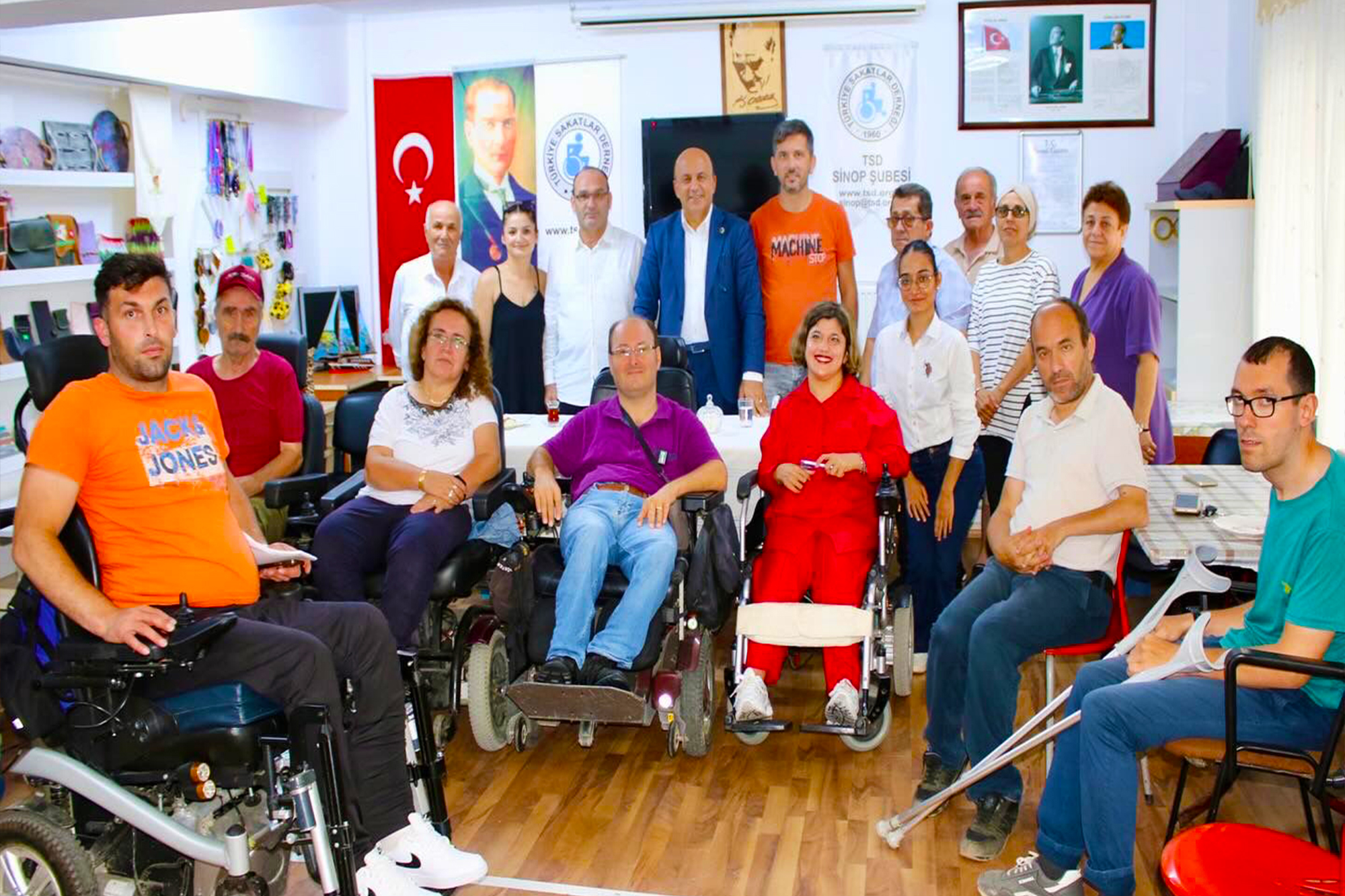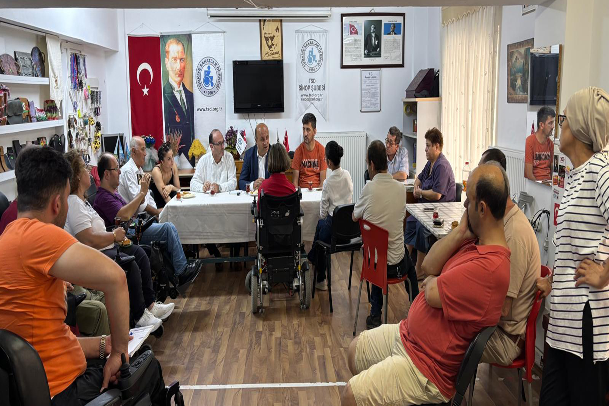 Türkiye Sakatlar Derneği Sinop Şube başkanı Sayın Murat KARAGÜLMEZ ve yönetim ile engelli üyeleri ve engelli aileleri Sinop Belediye Başkanı Sayın Metin GÜRBÜZ’ün ziyaretin de bir araya geldiler.